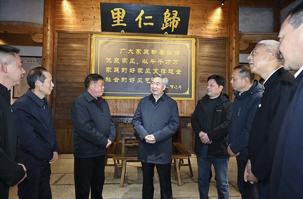 3月17日至20日,中共中央政治局常委、中央紀(jì)委書(shū)記李希到江西調(diào)研。這是3月18日,李希在上饒市婺源縣汪口村與干部群眾深入交流,聽(tīng)取對(duì)正風(fēng)肅紀(jì)反腐的意見(jiàn)建議。新華社記者 岳月偉 攝